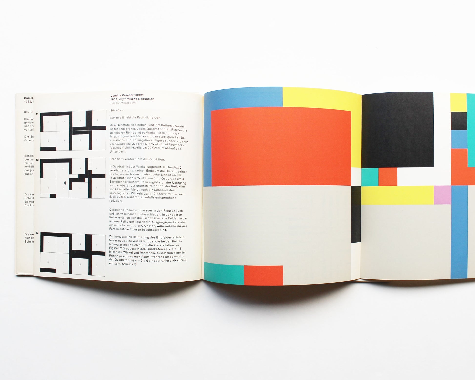 The second, focuses on the middle generation and includes critical commentary, stunning colored silkscreen examples (mostly full-page) with black and white line drawings revealing the composition of the artworks illustrated from: Josef Albers, Max Bill, Camille Graeser, Verena Loewenberg, and Richard P. Lohse.
