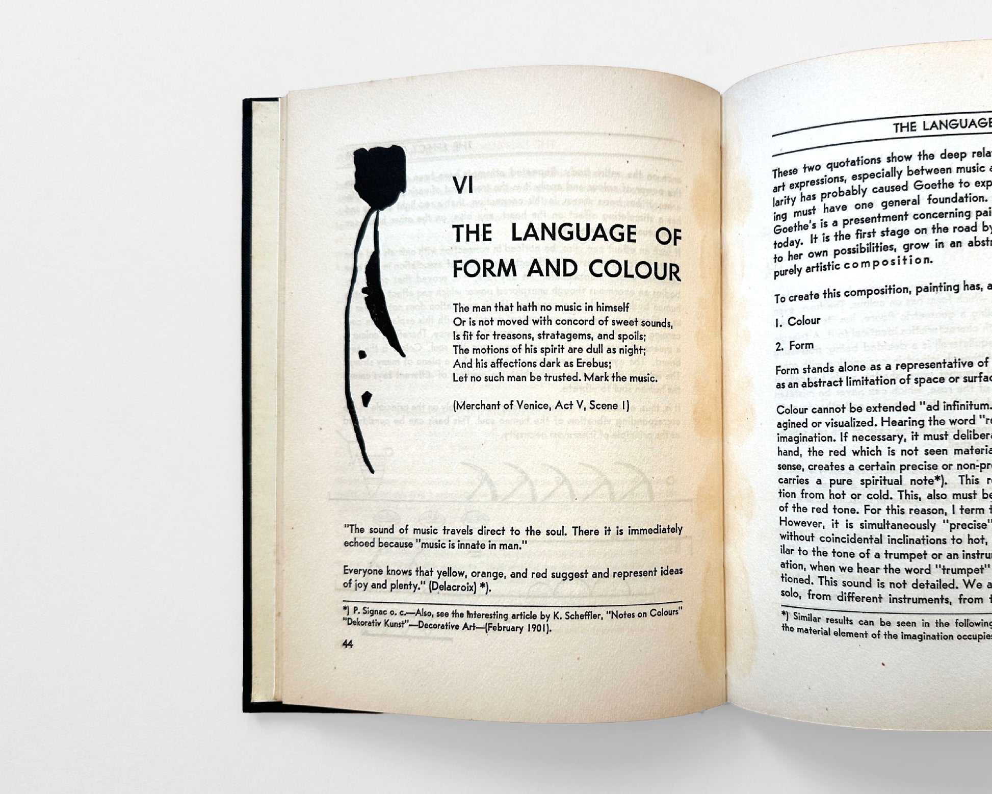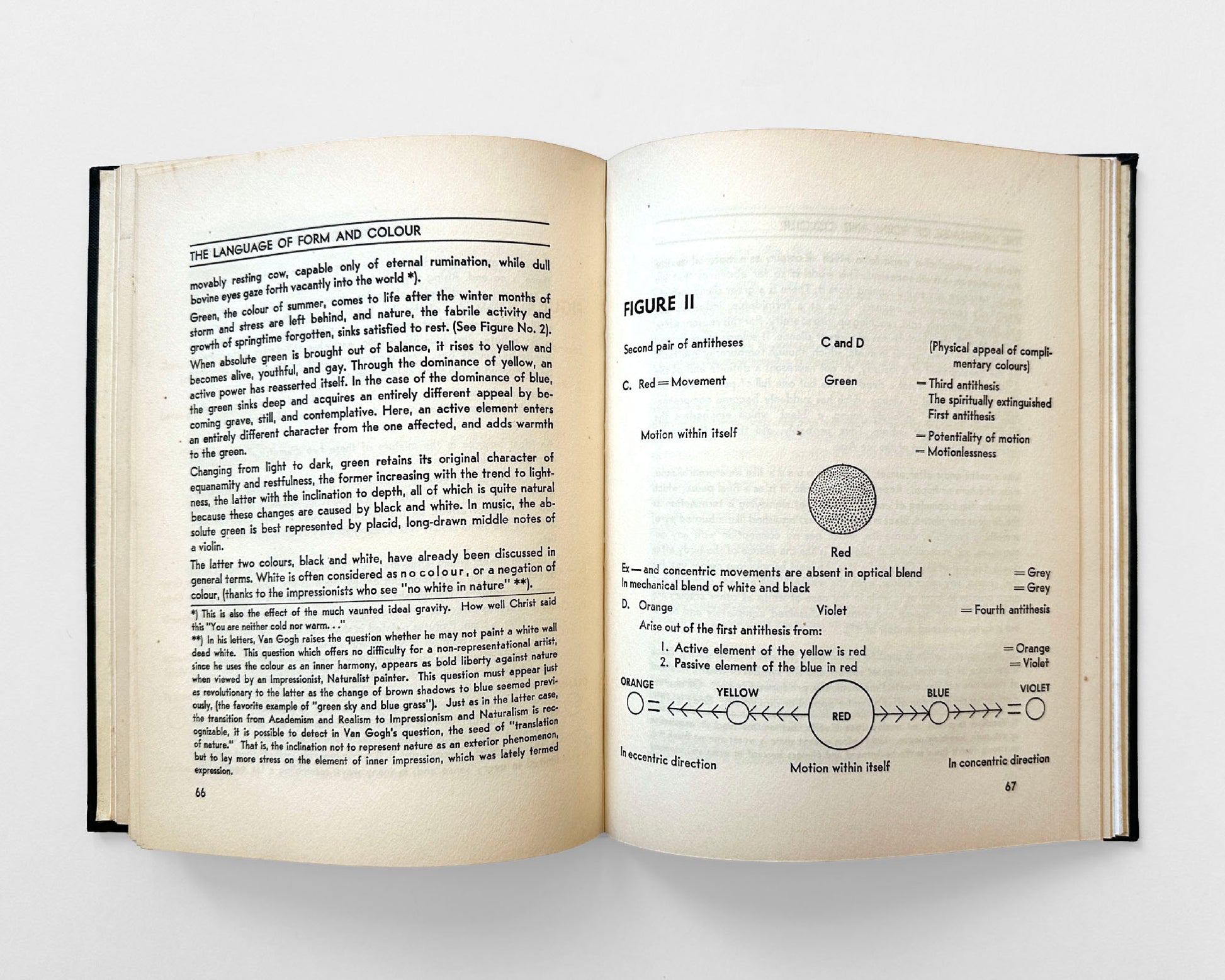 With a Foreword to the 1st original edition; the 2nd original edition; and this 1946 New York edition. In two sections: A. GENERAL (Introduction, The Movement, The Spiritual Turning-point, The Pyramid); B. PAINTING (The Effect of Color, The Language of Form and Color, Theory, Art and Artists). The book concludes with a survey of forty years of Kandinsky’s artistic evolution, excellent public comments left by visitors of the museum and a list of full page illustrations.
